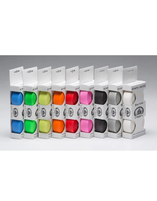 Synth. Le Gecko est un ruban de barre épais, durable et absorbant les chocs, fabriqué à partir de mousse 100% silicone. Disponible en neuf couleurs, il y en a forcément une qui correspond à la palette de couleurs de votre machine.