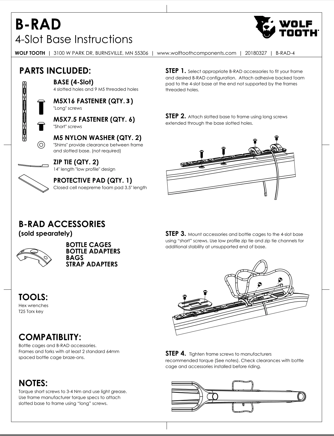 - La base à 4 fentes est la base la plus longue avec 9 trous filetés pour une flexibilité et une capacité ultimes lors de l’emballage du vélo, du tourisme, des déplacements domicile-travail ou simplement de l’exploration sur 2 roues. Il est assez long pour monter 2 petites bouteilles en ligne ou plusieurs accessoires. Le B-RAD 4 comprend les attaches zippées requises, des canaux pour les attaches zippées et un coussinet en mousse pour un montage sécurisé